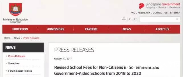 新加坡教育部今天在文告中指出,这次调整是根据教育部的定期学费检讨工作,公布下来三年(2018年至2020年)的学费调整将让外籍学生的家长有更清楚的信息,为孩子的教育费做规划。