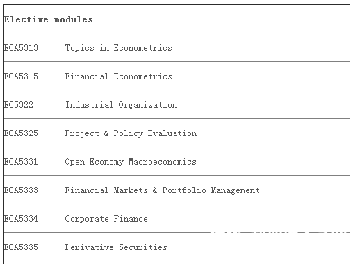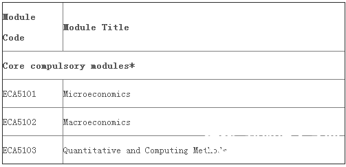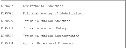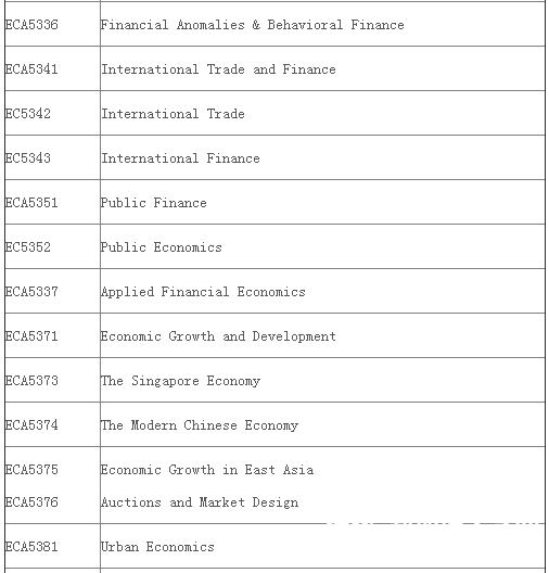 上面的必修课可以申请换成下面的课程EC5101 Microeconomic Theory, EC5102 Macroeconomic Theory, and EC5103 Econometric Modelling and Applications I,这些课程是从Master of Social Sciences (by Research) 项目来的。另外必修课最高分的六位学生可以拿到5000新币的奖学金。